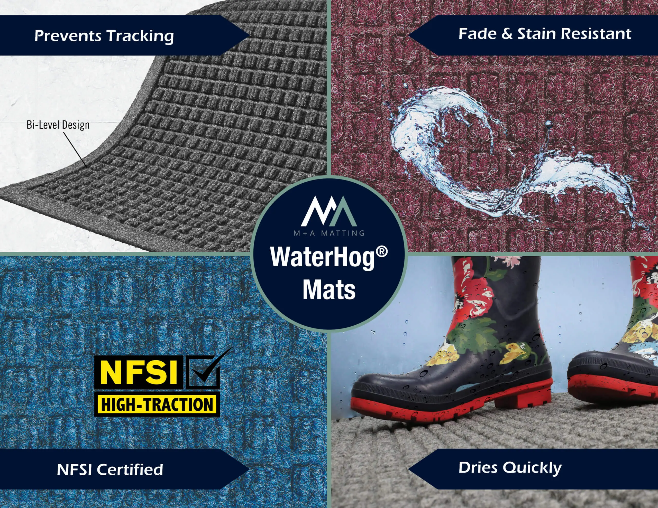WaterHog Bluestone-158, WaterHog Bordeaux-160, WaterHog Camel-150, WaterHog Charcoal-154, WaterHog Dark Brown-152, WaterHog Evergreen-159, WaterHog Medium Blue-156, WaterHog Medium Brown-151, WaterHog Medium Grey-157, WaterHog Navy-161, WaterHog Red/Black-155, WaterHog Solid Red-165